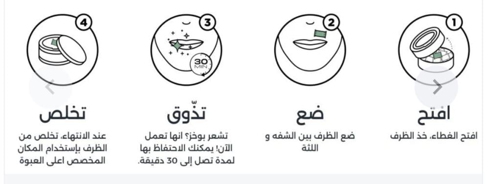 تتميز هذه الأظرف بسهولة استخدامها، مما يجعلها مثالية للاستخدام اليومي. فقط ضع الظرف في فمك واستمتع بالتجربة، حيث تتميز بالملاءمة والراحة ويمكن حملها واستخدامها في أي وقت وأي مكان.